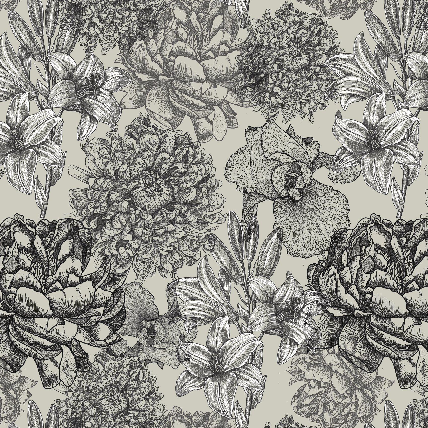 Patterns with flowers. Old engraving's style, watercolors and photorealistic style.