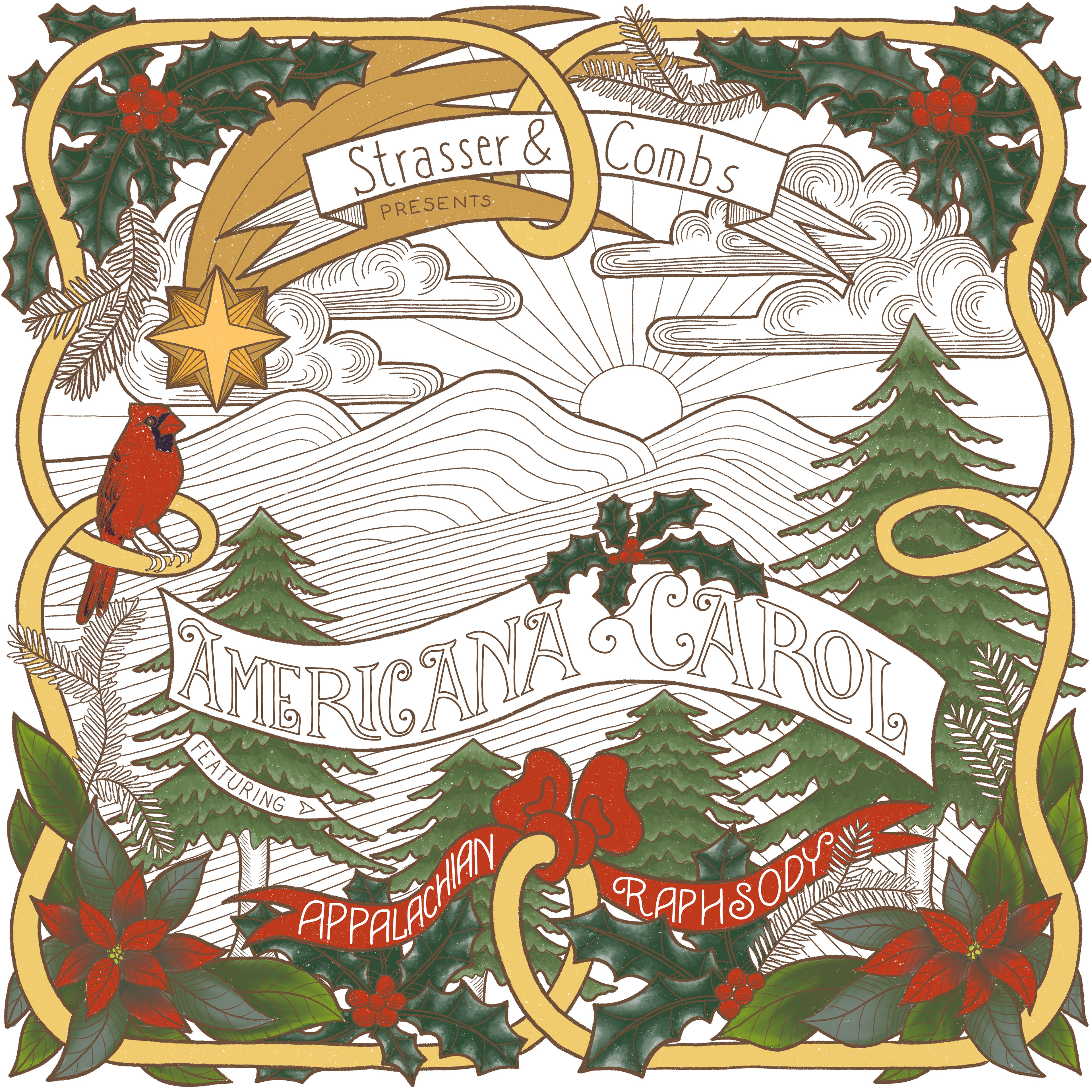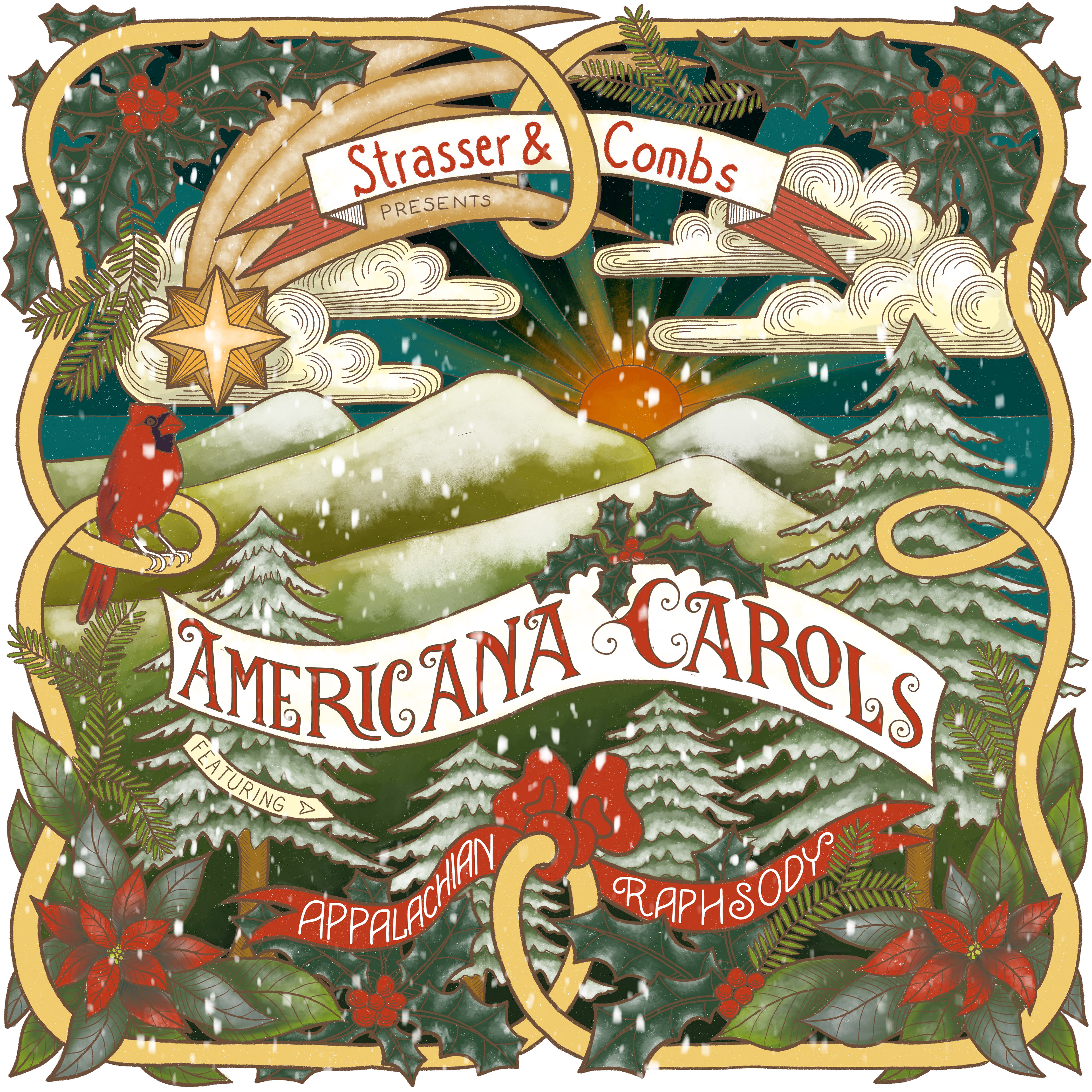 CD cover "Americana Carols" for Christmas in Alphonse Mucha style art nouveau.