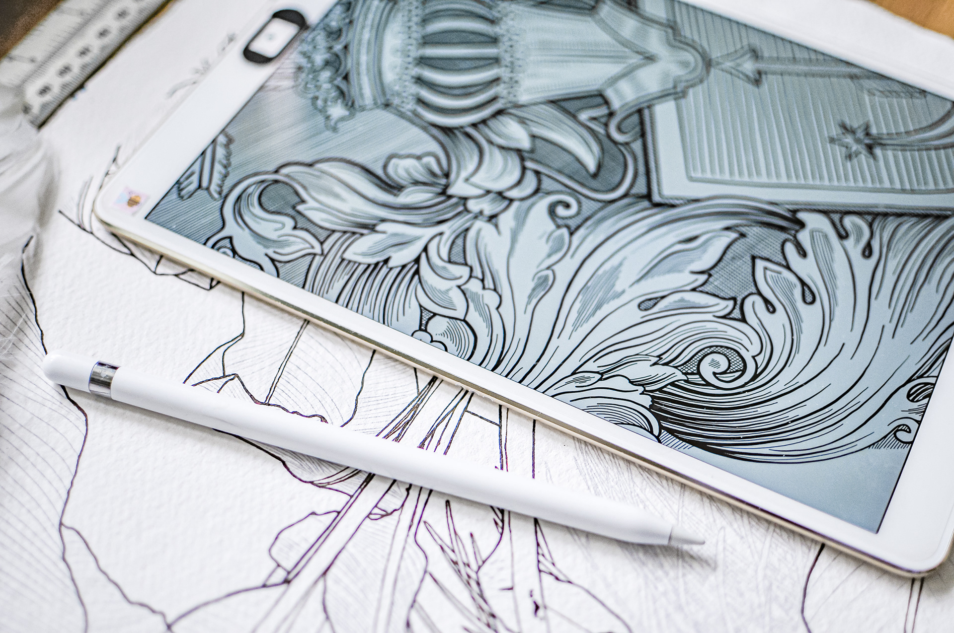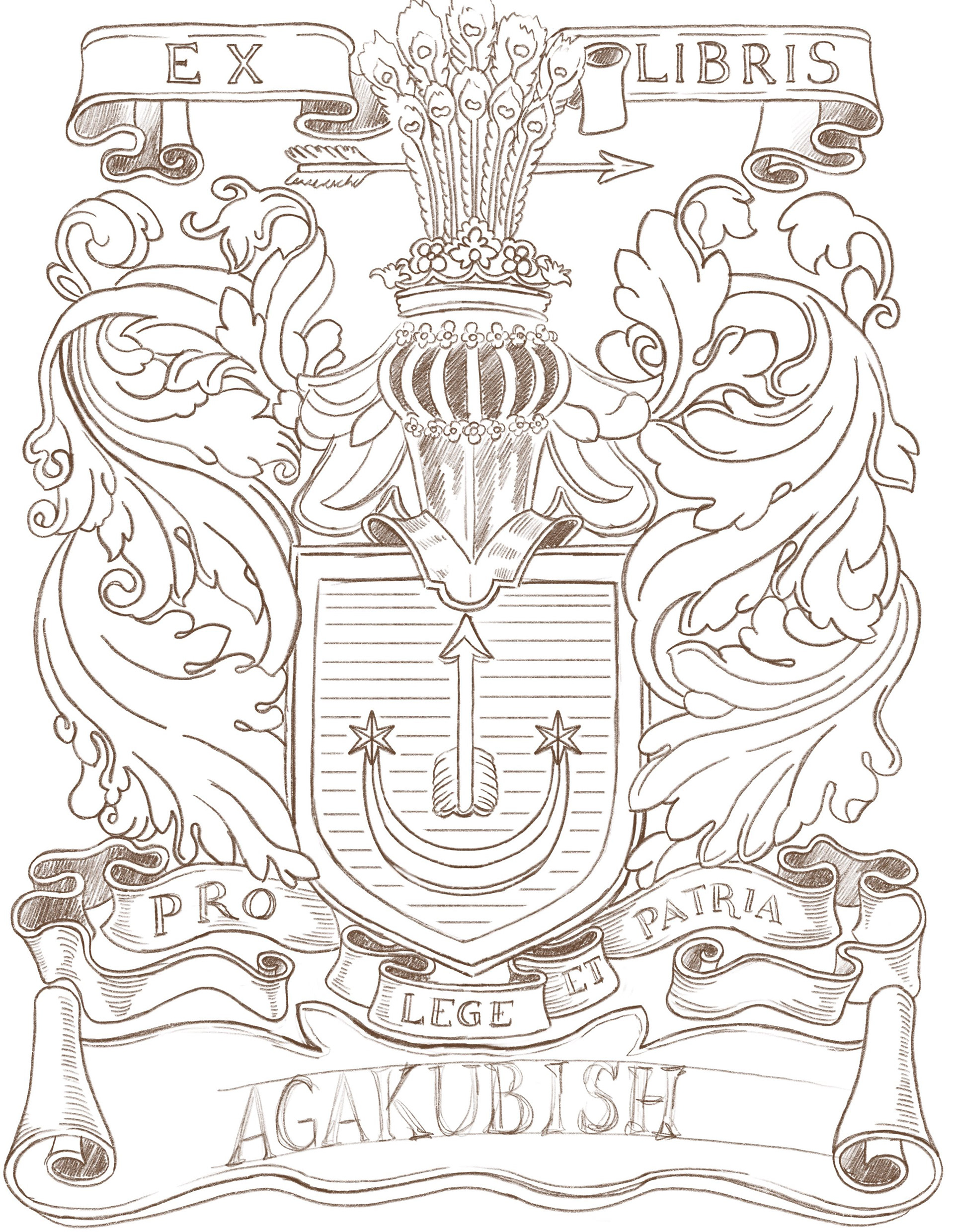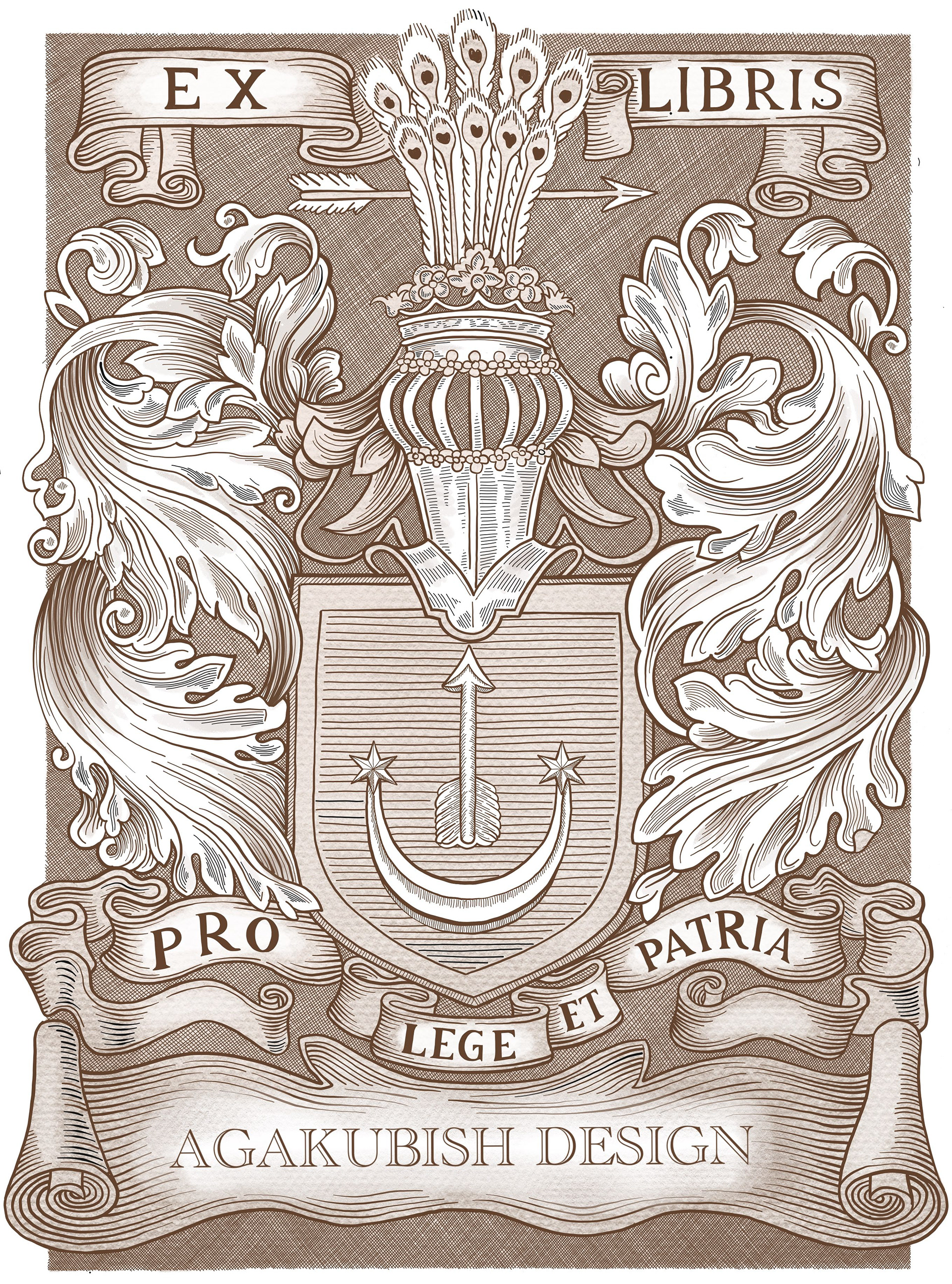 Custom exlibris made in old style and engraving style. Made by ipadPRO and Adobe Illustrator Draw.