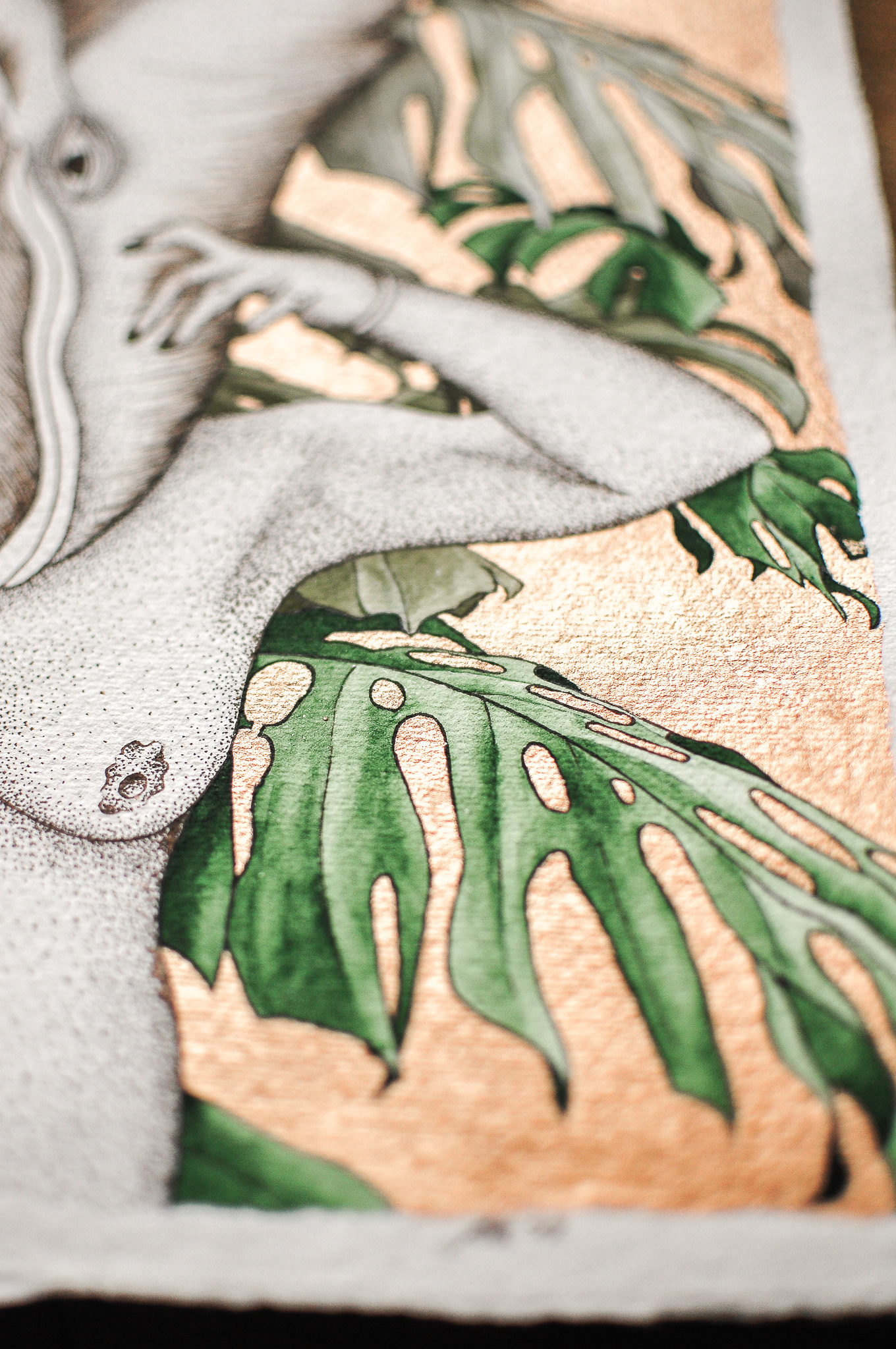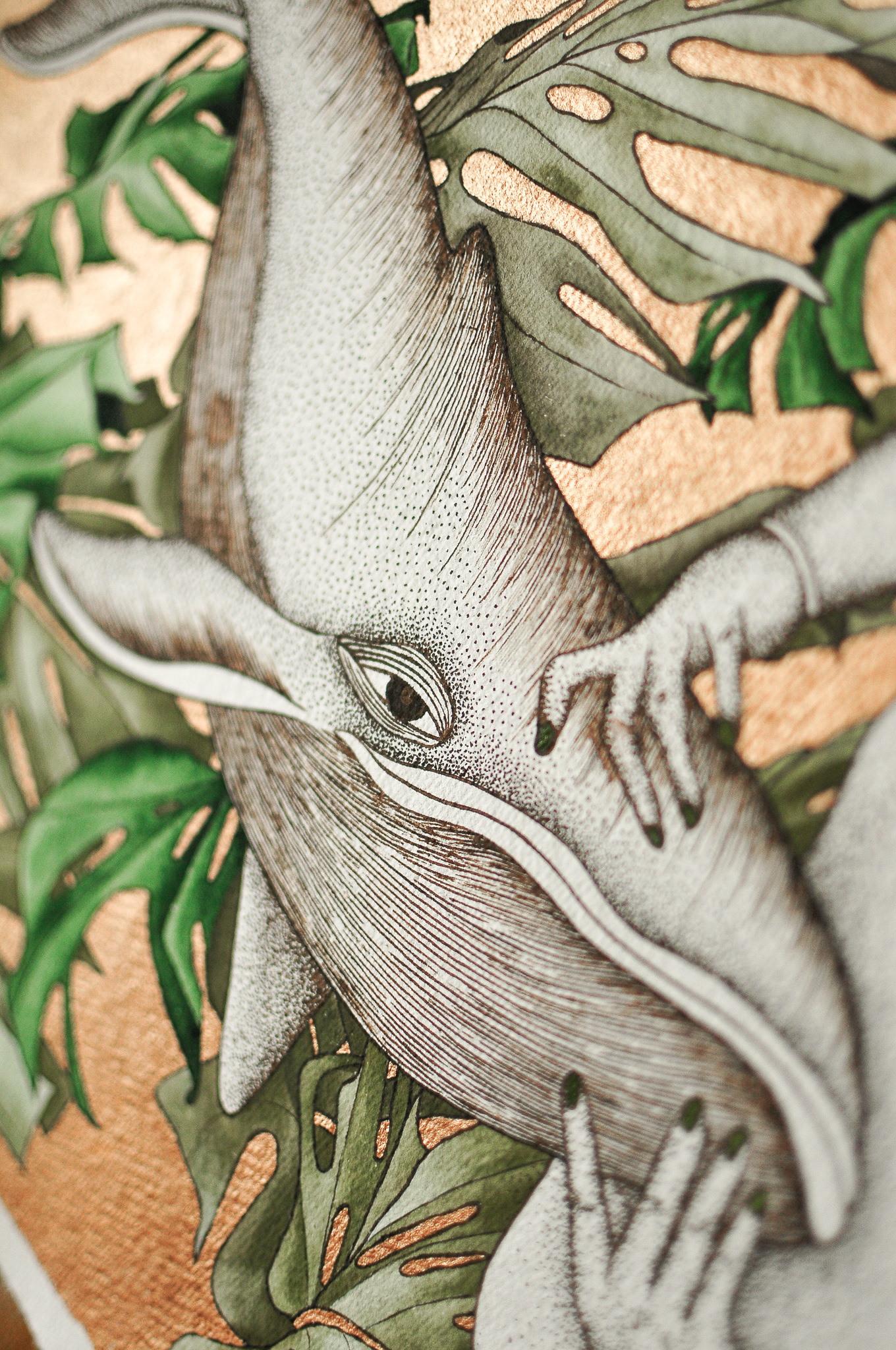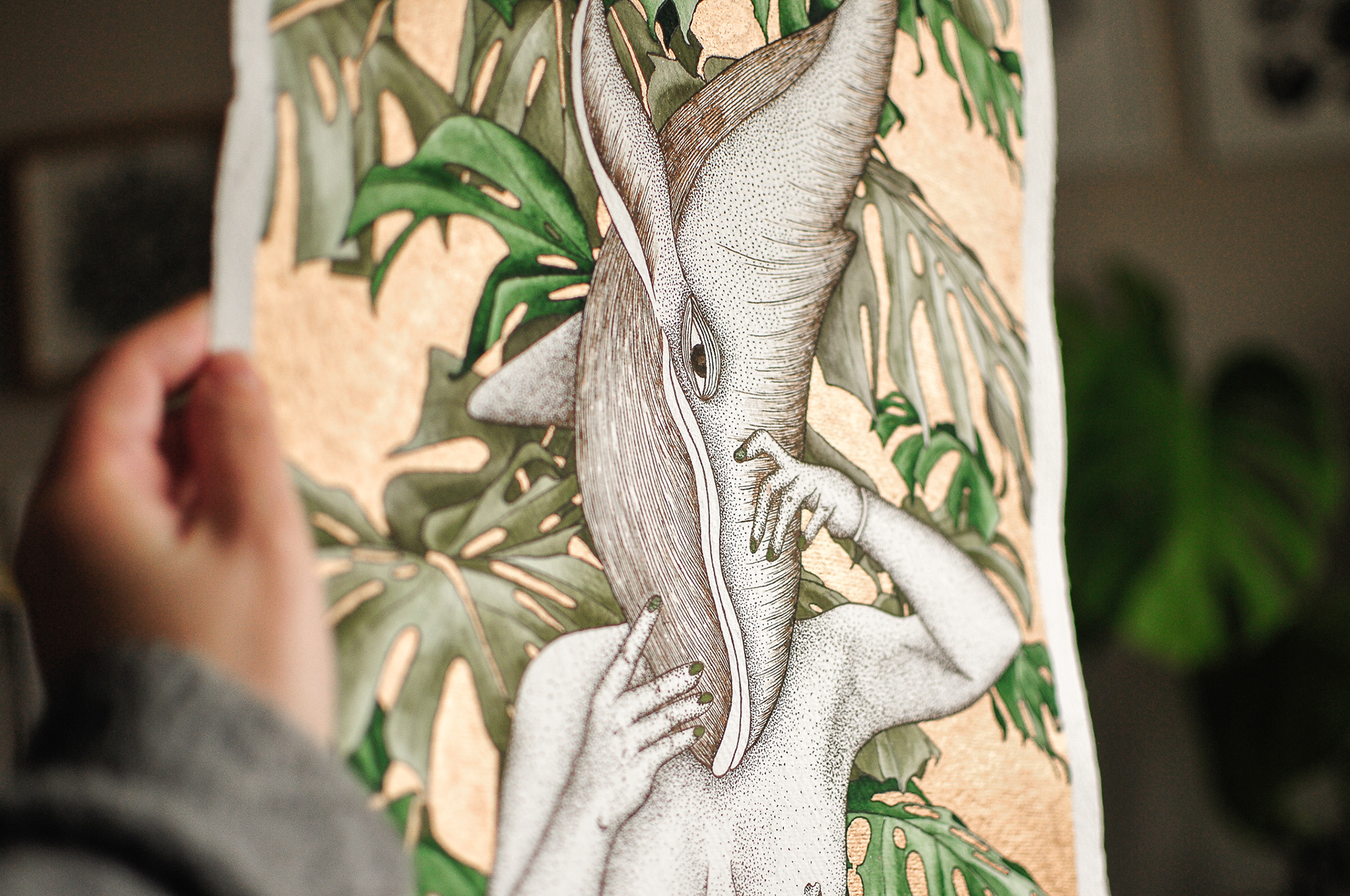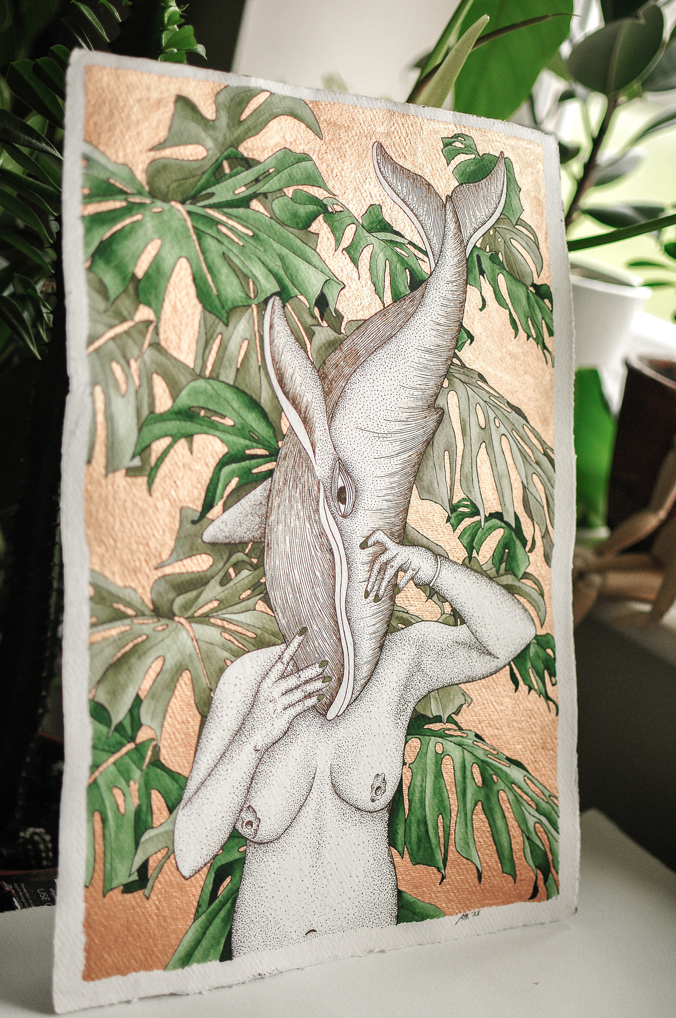 woman, whale, monstera
