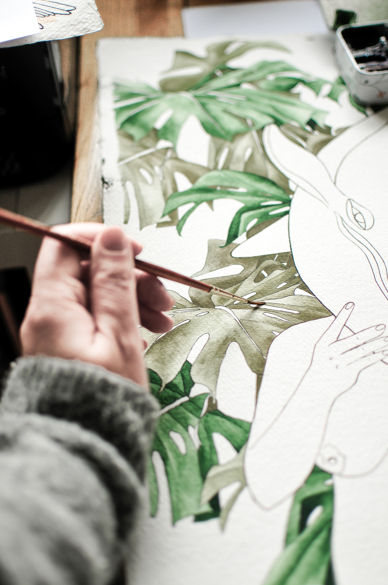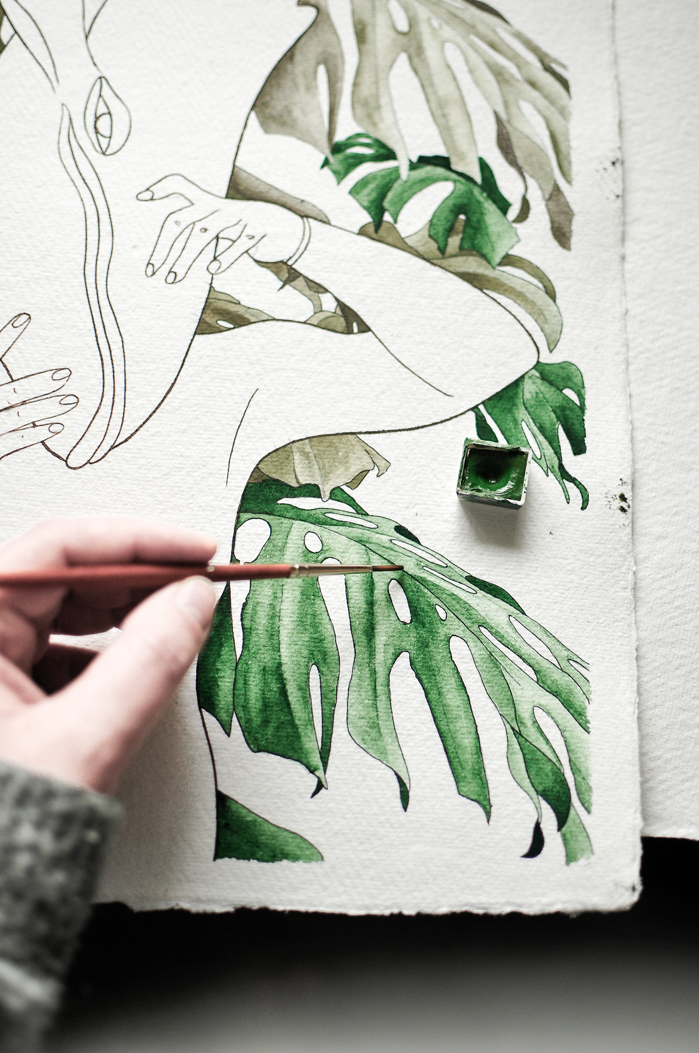 watercolor, ink, acrylic