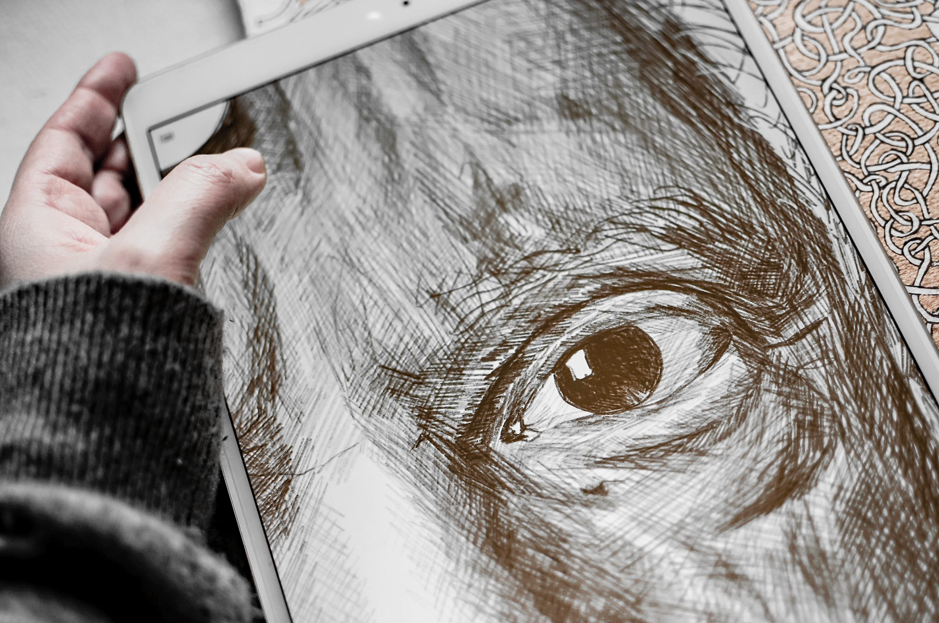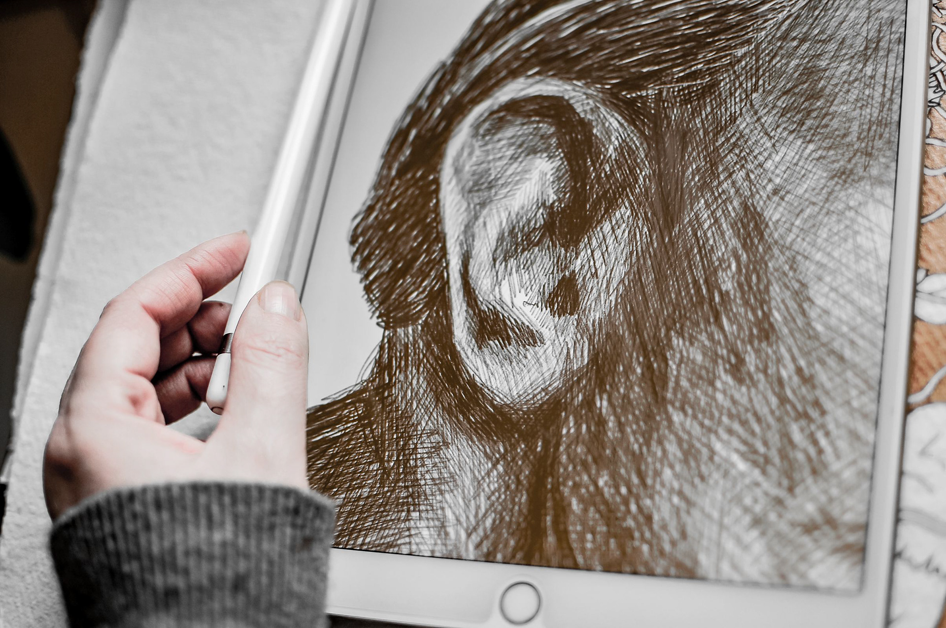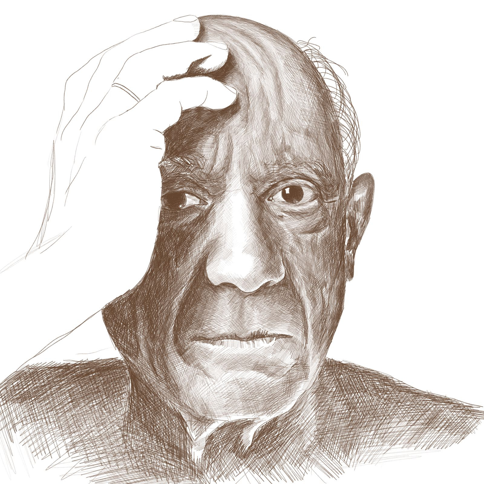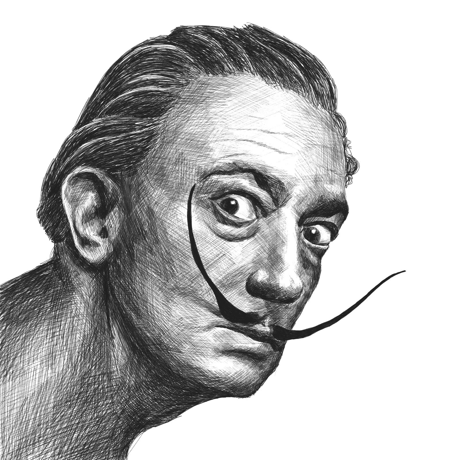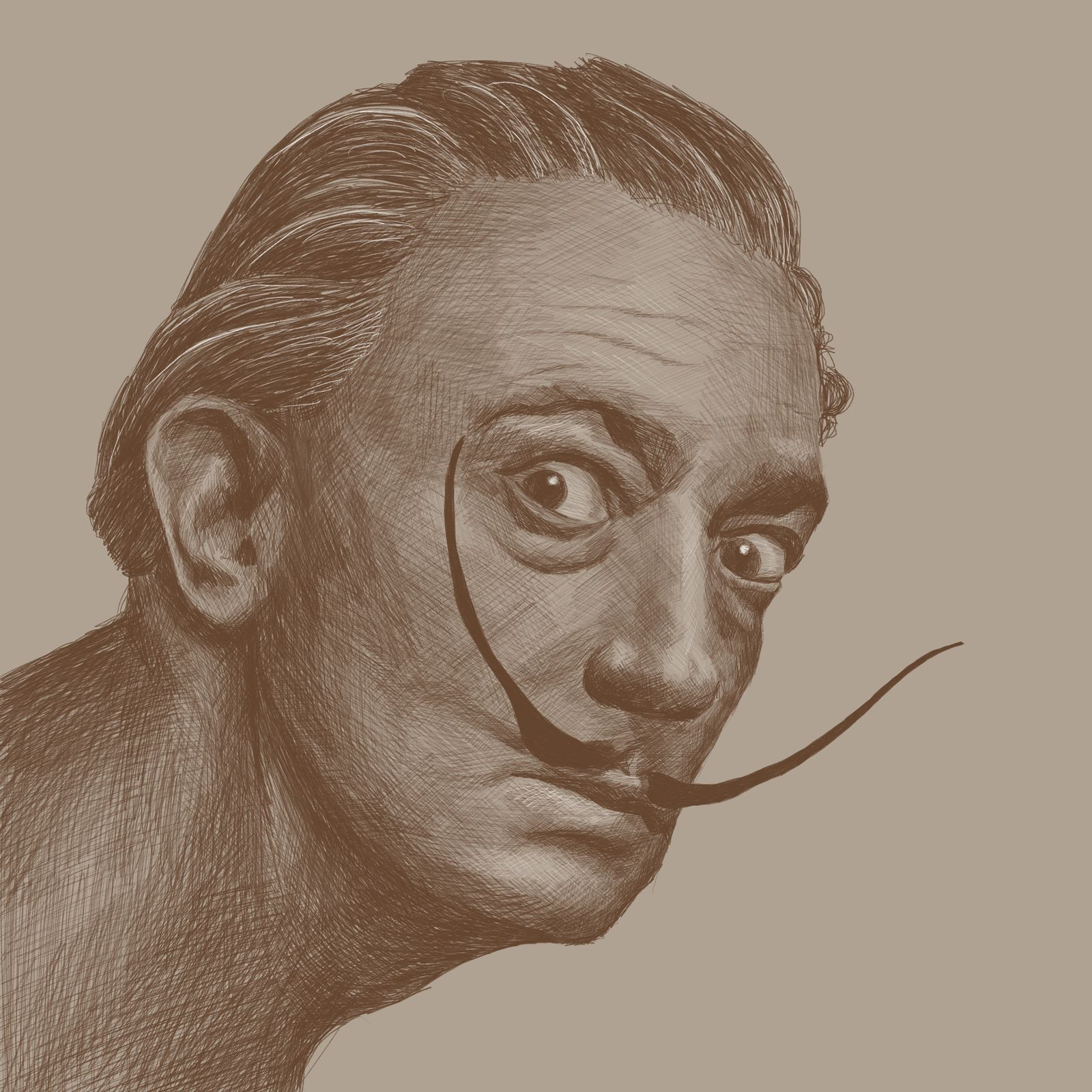 Portraits of great people: Dali, Einstain, Picasso made in pencils style by ipadPRO.