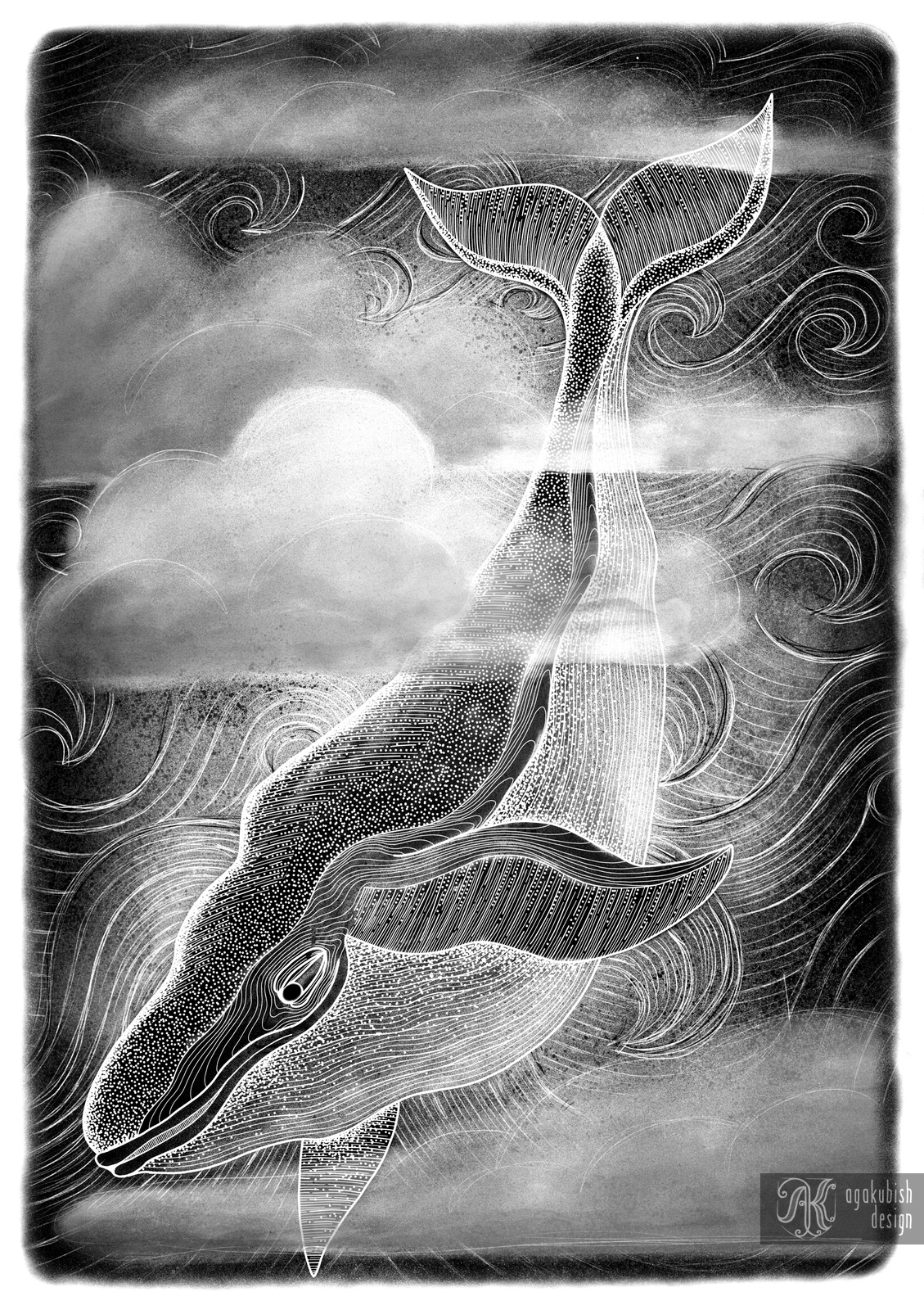 Digital artworks of sea monster made by ipadPRO and apple pencil in Adobe Illustration and Procreate software