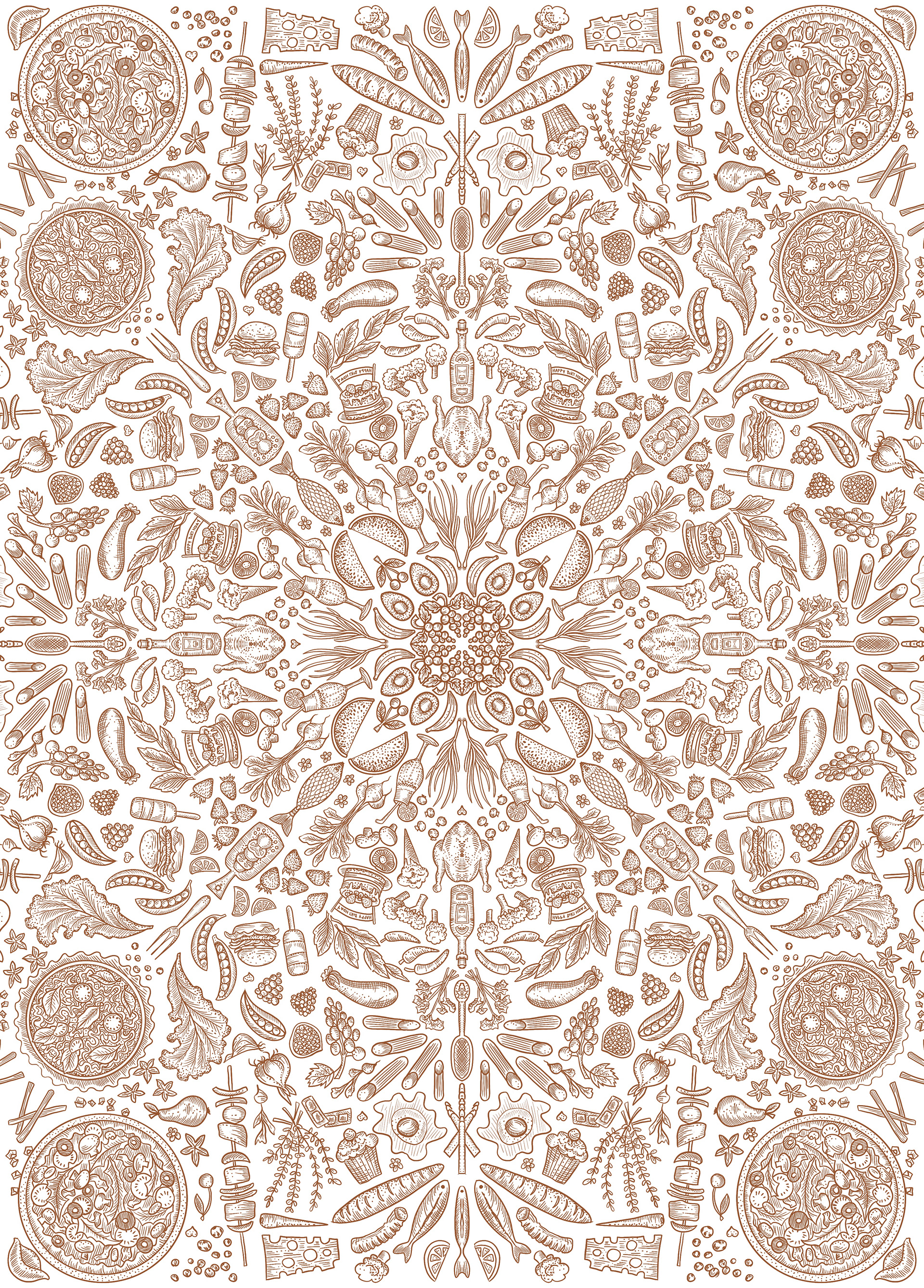 My design for Waitrose and Partners July illustrated edition magazine competition. A mandala with food made by ipadPRO /2020/